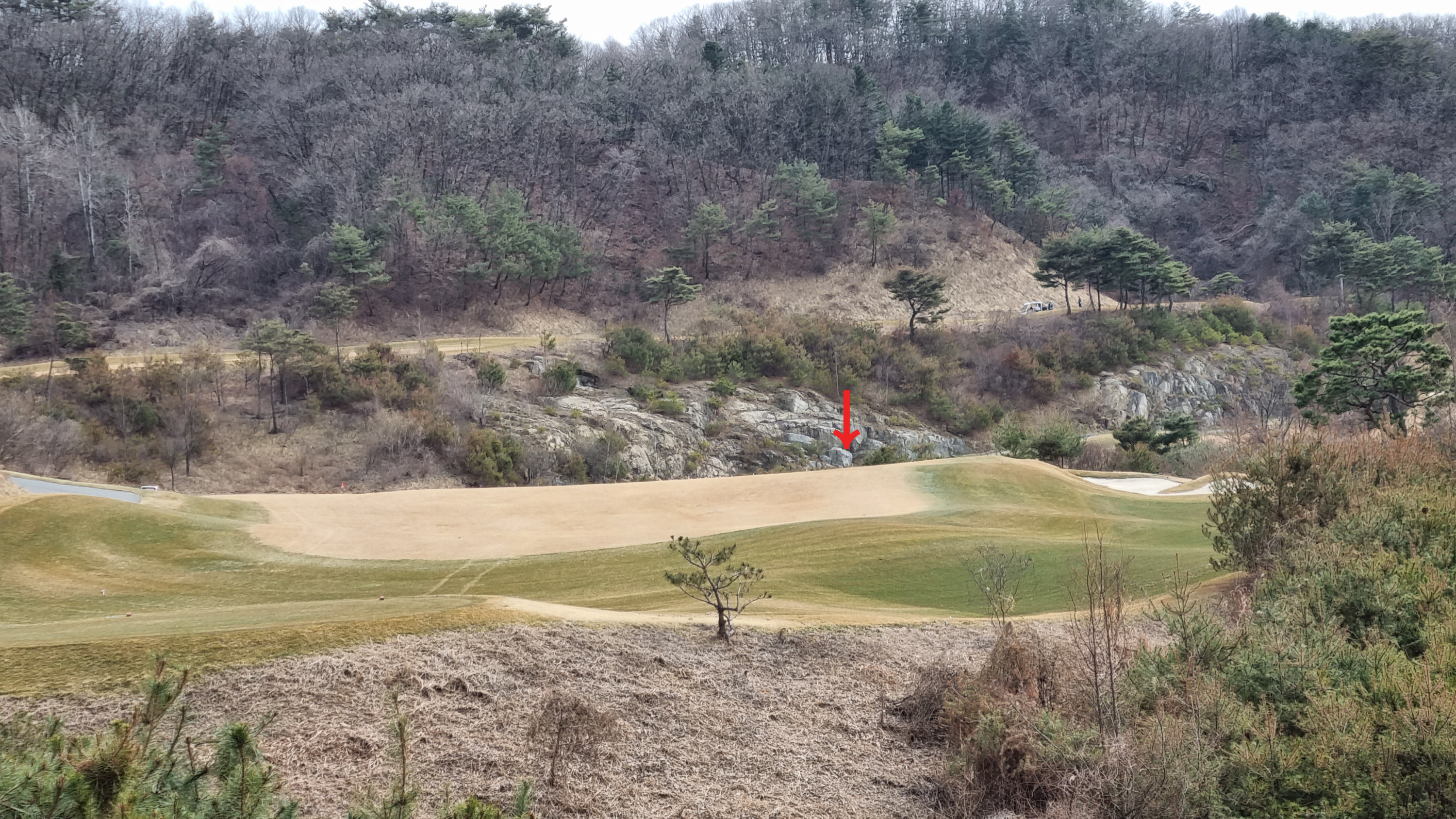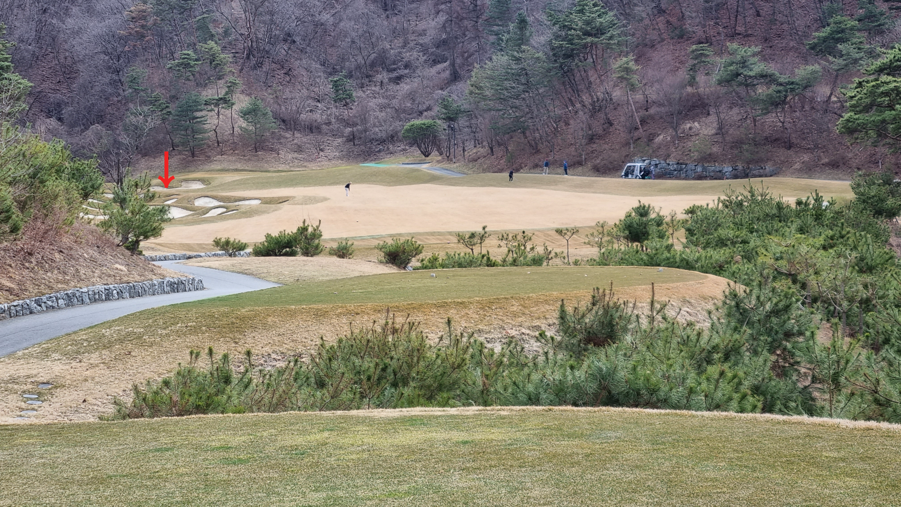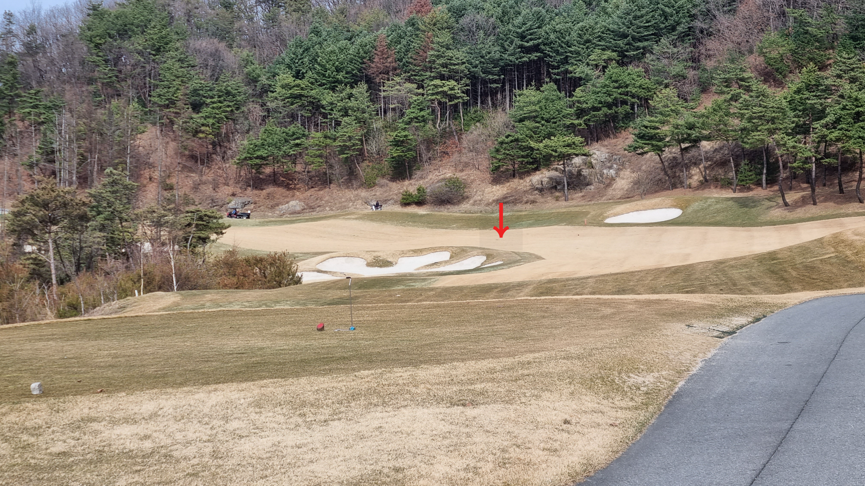 양쪽 벙커가 넓어 정확한 거리를 확인한 후 티샷을 해야 하는 홀이다. 왼쪽 벙커 앞의 넓은 페어웨이에서 티샷을 하십시오. 필드 길이가 길지 않아 짧은 샷으로 티샷을 할 수 있습니다. 유틸리티나 우드로 페어웨이에 안착하는 것이 좋다. 핸디캡 2번홀로 플레이하기 어려운 홀이다.