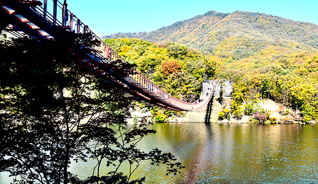 마양호수는 2001년에 완공되어 농업용수 공급과 수량조절을 하였다. 그러다 2018년 파주시가 마장저수지를 관광자원으로 개발하고 지역경제를 살리기 위해 주변에 수변테마파크를 조성했다. 전망대, 자동차 캠프, 카누/카약 모험 시설이 근처에 설치되었습니다. 가장 눈에 띄는 것은 마장호수를 가로지르는 220m 길이의 현수교다. 다리 중간에 방탄 유리 구간이 있어 건너는 짜릿함을 느낄 수 있습니다. 호수 주변의 4.5km 길이의 해안 산책로도 방문할 가치가 있습니다.