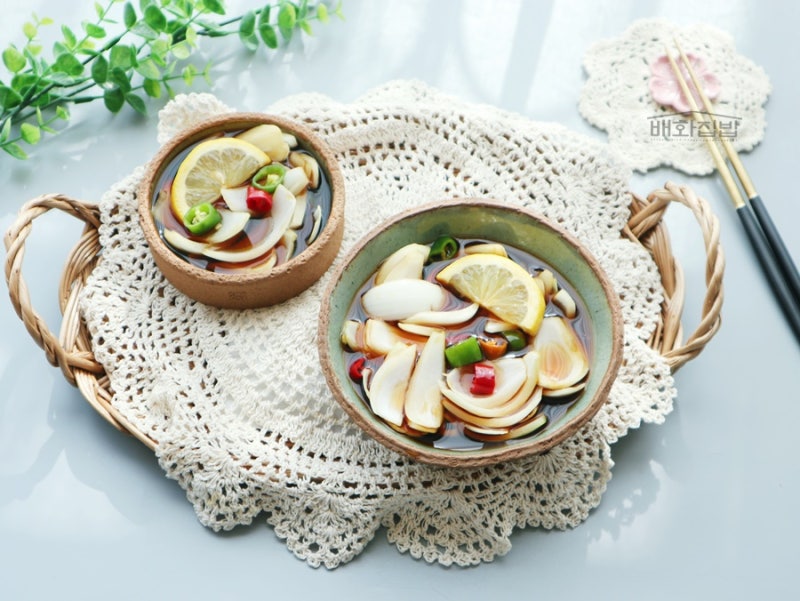 절임용 양파가 나왔을 때 넉넉하게 넣어도 좋아요 삶지 않아도 바로 만들어 먹는 절임이므로 조금씩 자주 만들어 먹는 것을 추천합니다