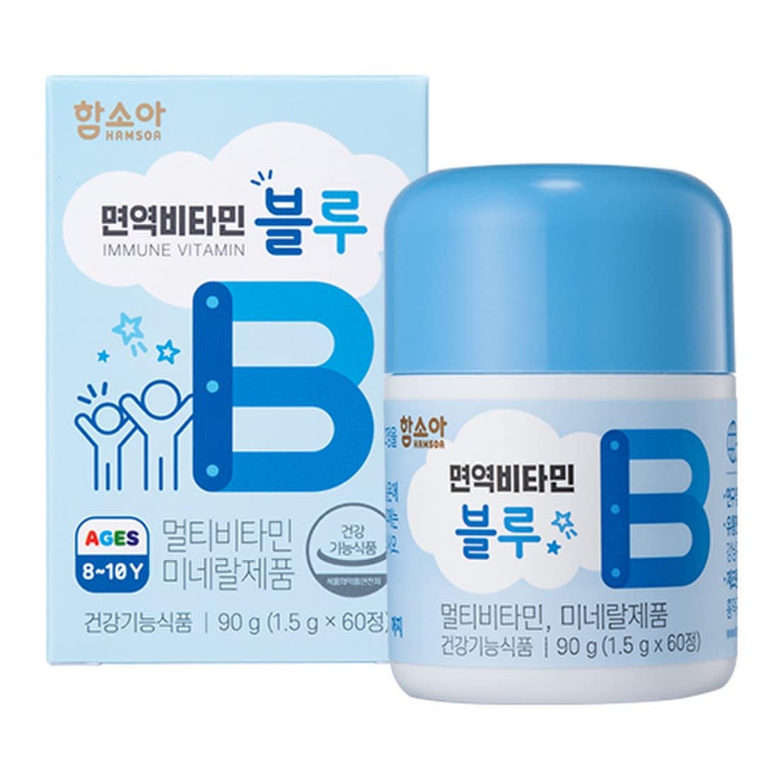 함소아 면역비타민 ‘블루’ 아이 나이에 따라 색깔이 달라지는 면역비타민! 8~18세는 “파란색”