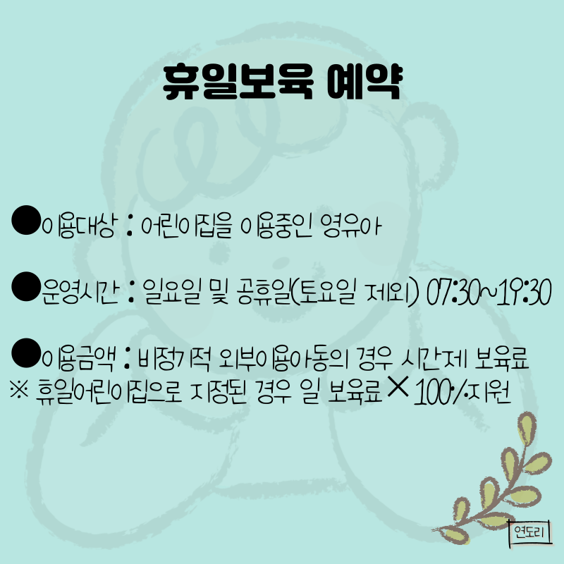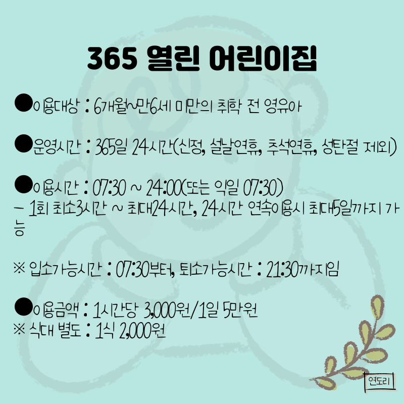 오늘은 주말에도 보육이 가능한 서울형 주말어린이집 이용방법과 365일 24시간 어린이집 이용방법에 대해 알아보도록 하겠습니다 🙂