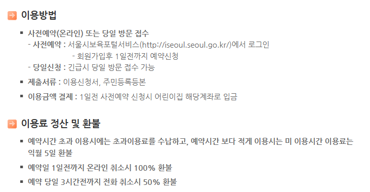 이용방법 서울형 365형 개방형 어린이집 주말어린이집