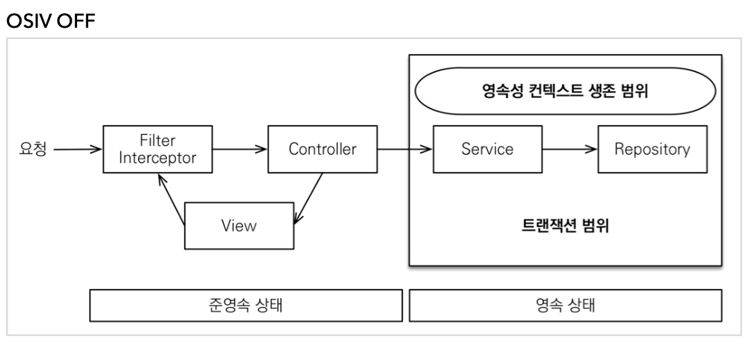 실제로 OSIV가 꺼져 있을 때 복잡성을 처리하는 한 가지 방법은 명령과 쿼리를 분리하는 것입니다. 비즈니스 로직에 등록되거나 수정되기 때문에 성능상의 문제는 없습니다.